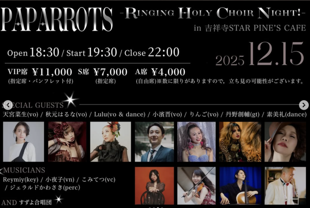 「PAPARROTS – Ringing Holy Choir Night!- 」in 吉祥寺STAR PINE’S CAFE