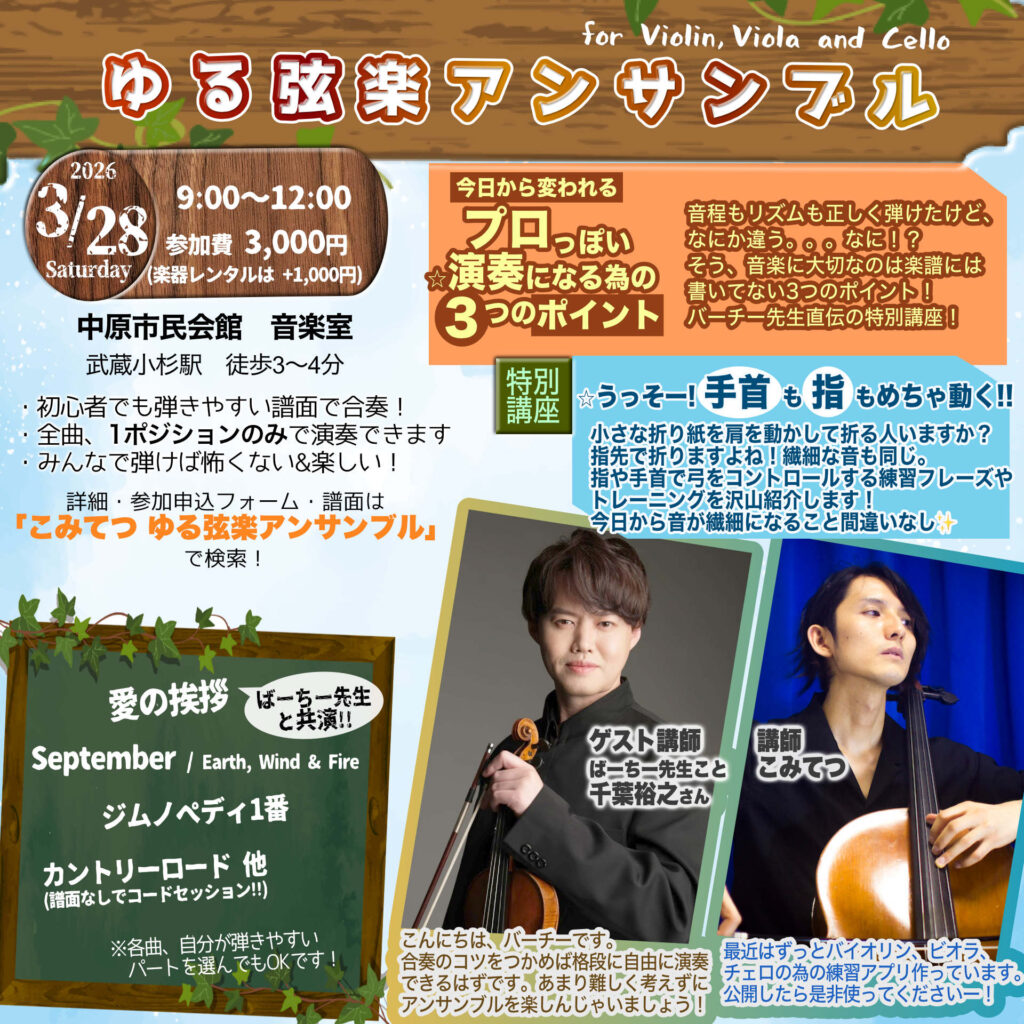 ・バイオリン、ビオラ、チェロの方向けの弾きやすいアレンジの譜面をつくりました!